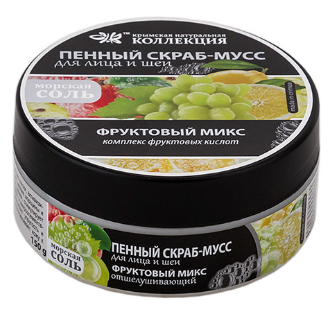 ПЕННЫЙ СКРАБ-МУСС ФРУКТОВЫЙ МИКС - ОТШЕЛУШИВАЮЩИЙ - ТМ "КРЫМСКАЯ НАТУРАЛЬНАЯ КОЛЛЕКЦИЯ"