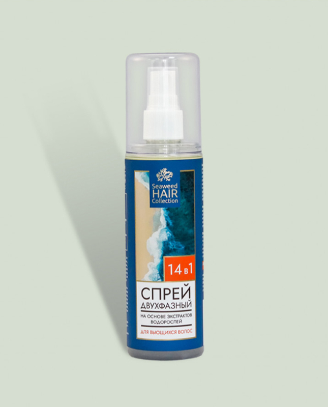 Спрей для волос двухфазный 14 в 1 на основе экстрактов водорослей подходит для коротких и длинных вьющихся волос: