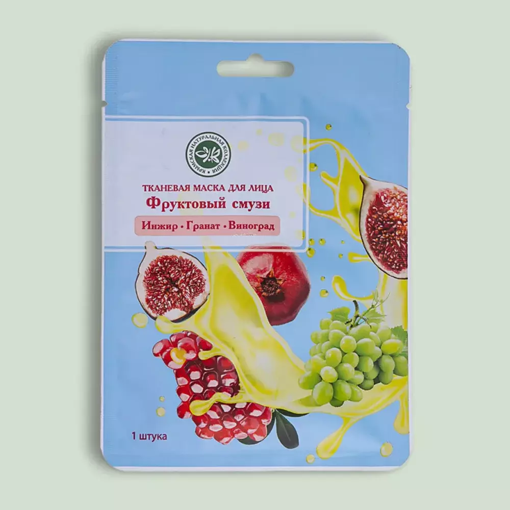 Тканевая маска для лица "Фруктовый смузи. Инжир, гранат, виноград" - ТМ "КРЫМСКАЯ НАТУРАЛЬНАЯ КОЛЛЕКЦИЯ"
